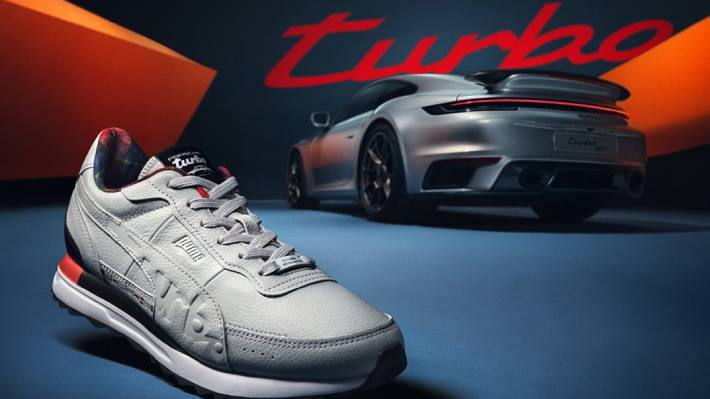 Según se precisó, los 12 modelos de zapatillas que rinden tributo al deportivo con motor bóxer turboalimentado están basados en las Puma Road Rider, pero ofrecerán detalles exclusivos que recuerdan a la leyenda automotriz, como la tipografía, el escudo impreso en 3D en el talón y la placa frontal entre los cordones con la inscripción “911 Turbo 50Y Anniversary”.