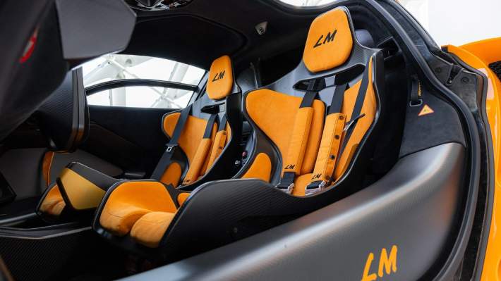 El superdeportivo destaca por ostentar el característico color naranja de la marca, como el del F1 LM de los años 90. Este tono también se replica en el interior, que presenta unos asientos de fibra de carbono y Alcántara, así como un volante que también utiliza este tejido.