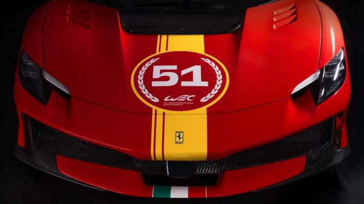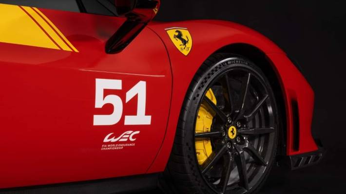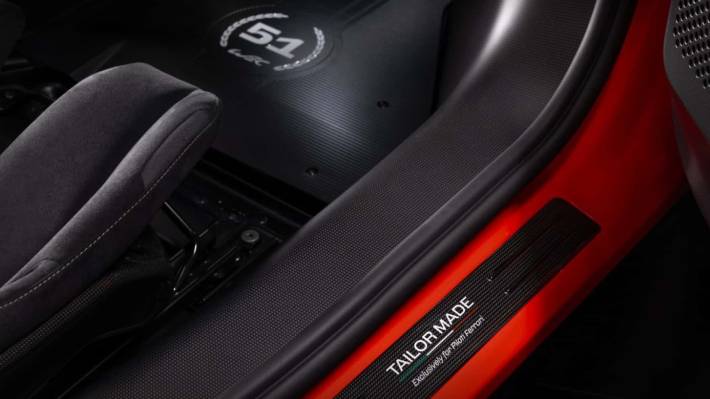 Para reforzar su carácter exclusivo, incluye detalles únicos como un logotipo del Campeonato Mundial de Resistencia (WEC) pintado a mano, la bandera italiana en el paragolpes y la posibilidad de elegir el número de competición, inspirado en los autos ganadores de Le Mans (50, 51 o 83).