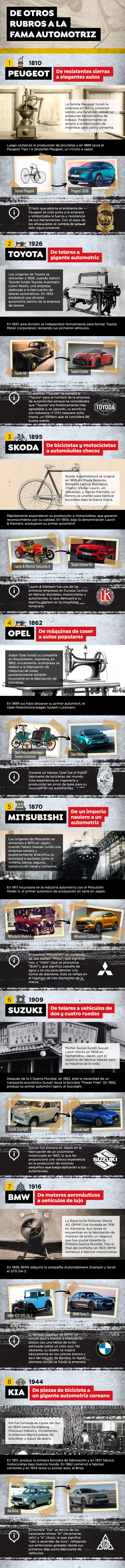 Antes de fabricar autos, muchas marcas reconocidas incursionaron en otros rubros como la producción de herramientas o telares. Revisa algunos casos en una entretenida infografía.