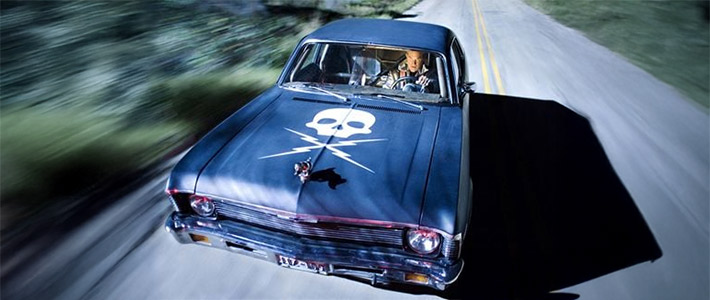 Grindhouse, la película en dos partes dirigida por Quentin Tarantino y Robert Rodríguez, rinde homenaje a las películas de serie b de los años 70 y al cine de explotación y de género que abundaba en sangre, violencia y fantasía. En Grindhouse - Death Proof, el segundo segmento de la película, mostraba al sádico y misógino doble de acción Mike (Kurt Russell) conduciendo su Chevy Nova modificado de los años 70. El auto, excéntrico, cautivador y muy potente, se convirtió en uno de los más famosos del cine y es recordado su calavera con dos huesos cruzados en el capó.