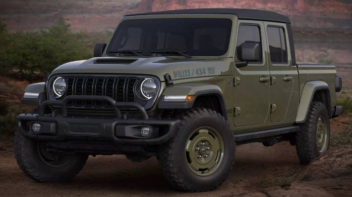 El "Gladiator Willys ’41" destaca por una estética de corte militar que incluye parachoques de acero, ruedas exclusivas de 17 pulgadas pintadas en verde oliva y un capó con acabado Mojave acompañado de gráficos especiales.