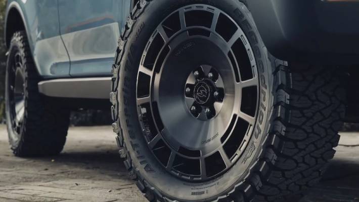El diseño exterior se complementa con llantas negras de 22 pulgadas, neumáticos todoterreno BFGoodrich de 35 pulgadas, manillas de puertas oscuras y un techo negro en contraste.