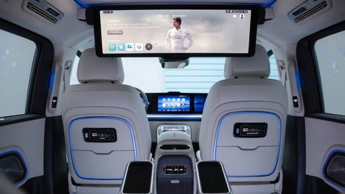 También estará disponible un sistema de entretenimiento trasero con una pantalla panorámica de 31,3 pulgadas que se despliega desde el techo. Este sistema ofrece resolución 8K, función de pantalla dividida y una cámara de ocho megapíxeles pensada para videoconferencias.