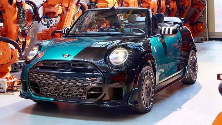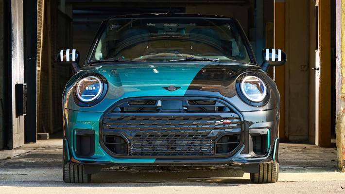 El diseño exterior se complementa con accesorios originales John Cooper Works instalados de fábrica, como elementos aerodinámicos y llantas Rallye Spoke de 18 pulgadas. También incorpora detalles distintivos como inscripciones específicas y una capota con diseño de la Union Jack, en alusión a sus raíces británicas.
