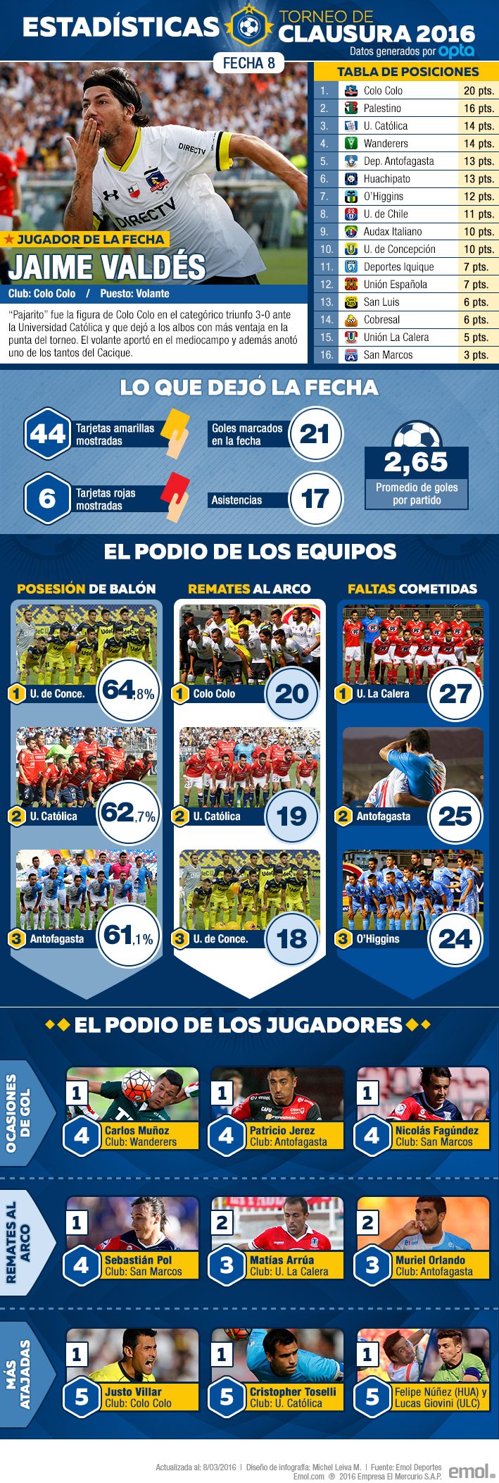 Repase acá los números más destacados que dejó una nueva jornada del fútbol chileno en la Primera A.