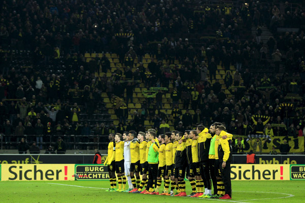 Pese a la victoria por 2-0 de su equipo, los aficionados del Westfalenstadion, conocidos por su pasión al animar, estuvieron durante gran parte del partido en silencio al extenderse por las gradas la noticia del fallecimiento.