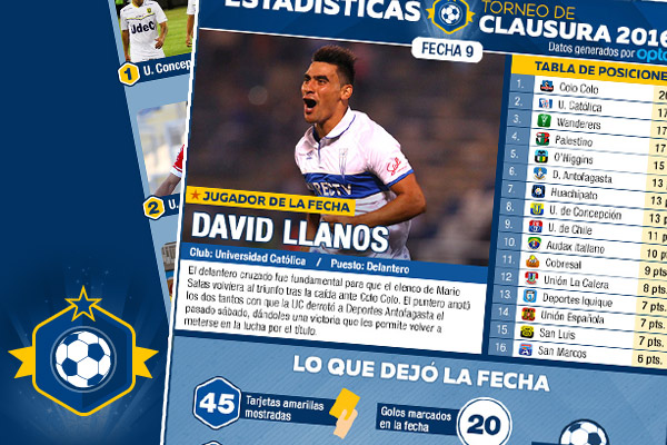 David Llanos la figura, Colo Colo el con más posesión: Las cifras de la novena fecha del Clausura