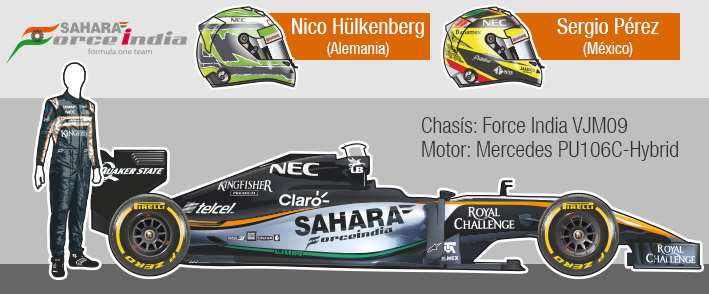 La escudería india fue creada en 2007 tras la compra del equipo de Spyker F1 por el magnate del mismo país Vijay Mallya, en sociedad con el multimillonario holandés Michiel Mol. A pesar de que aún no ha ganado ningún campeonato mundial, hasta ahora asoma como una muy prometedora escudería. Los pilotos del equipo son el mexicano Sergio Pérez y el alemán Nico Hülkenberg.