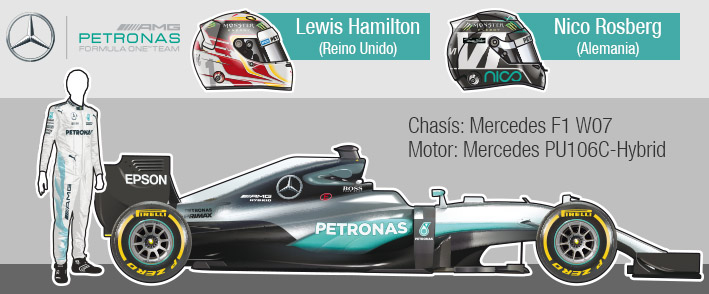 Es una de las escuderías más prometedoras de la Fórmula 1, gracias a su ascendente camino. Es dirigida por la poderosa empresa automovilística alemana Daimler AG, dueña también de Mercedes-Benz y Smart. El equipo cuenta con dos campeonatos mundiales y 51 podios. Sus pilotos son el talentoso británico Lewis Hamilton y el alemán Nico Rosberg, quienes buscarán mantener los buenos resultados obtenidos el año pasado.