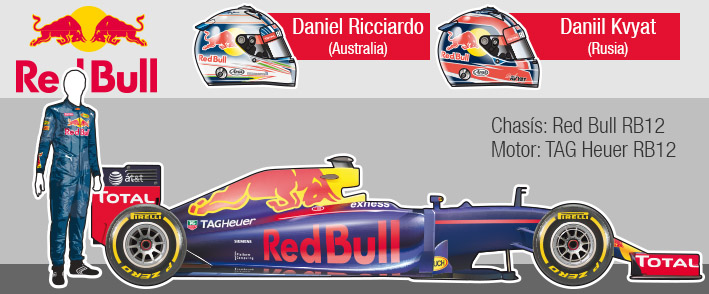 A pesar de haber sido patrocinador de diversos equipos de la Fórmula 1 durante muchos años, la escudería de Red Bull es una de las más nuevas de la competencia tras haber ingresado formalmente como equipo luego de la adquisición de Jaguar en noviembre de 2004. Sus pilotos son el ruso Daniil Kvyat y el australiano Daniel Ricciardo.