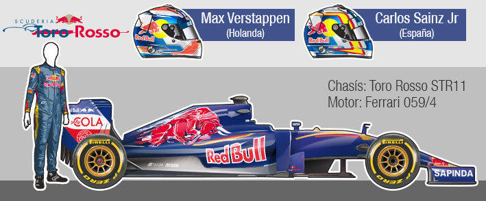 Formado a partir del extinguido equipo de Minardi F1 Team en 2006, la escudería de Toro Rosso fue en un principio utilizada para que jóvenes talentos del equipo de Red Bull dieran sus primeros pasos en la categoría. Sin embargo, hoy en día ya no es considerado un "equipo B", sino un grupo independiente y capaz de dar la pelea en la Fórmula 1. Sus pilotos son el holandés Max Verstappen y el español Carlos Sainz Jr.