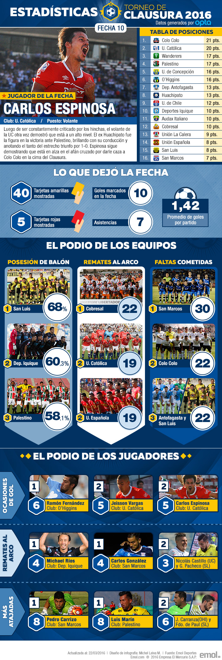 Repase los números que dejó la más reciente jornada del campeonato nacional, donde el Cacique se mantuvo como líder, pero ahora solo por un punto de diferencia sobre los cruzados.