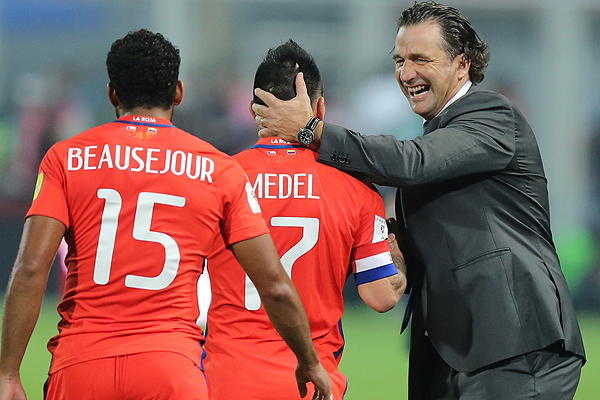 El técnico dejó fluir todas sus sensaciones. La alegría era total, tanto que se dio un fuerte abrazo con su cuerpo técnico y jugadores como Medel y Gutiérrez.