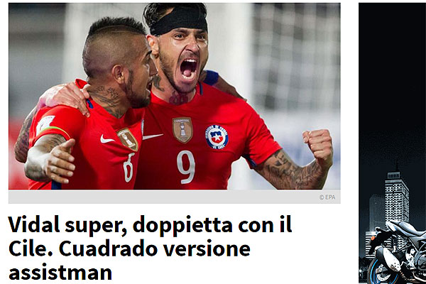 "Super Vidal anotó doblete con Chile. Chile ganó 4-1 a Venezuela después de ir en desventaja. Pero se puso arriba con dos goles de Pinilla. Luego, en la segunda mitad, Vidal puso el resultado y la tranquilidad para Chile".