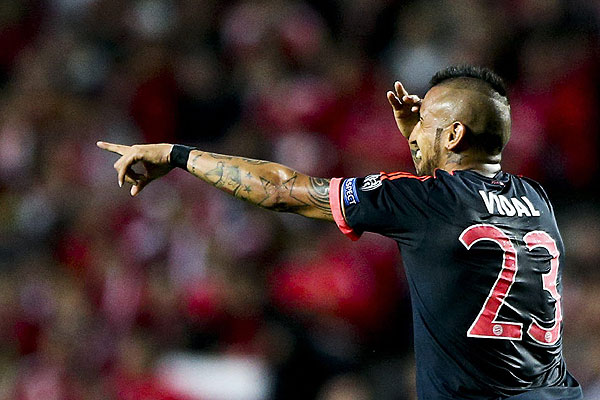 SANTIAGO.- Arturo Vidal sigue sumando buenas actuaciones en el Bayern Munich. El volante chileno volvió a anotar por Champions League, ahora en el 2-2 sobre el Benfica que significó la clasificación a las semifinales del certamen continental.
