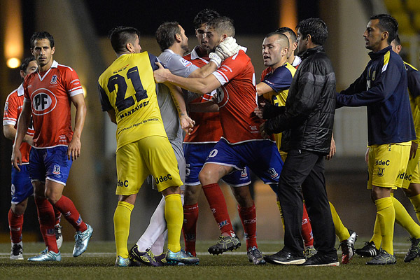 Pero la situación no terminó ahí, pues finalizado el encuentro los jugadores caleranos fueron a buscar a los penquistas para seguir con las discusiones, ante los gritos de Ronald Fuentes para que sus dirigidos se fueran de inmediato a los vestuarios.