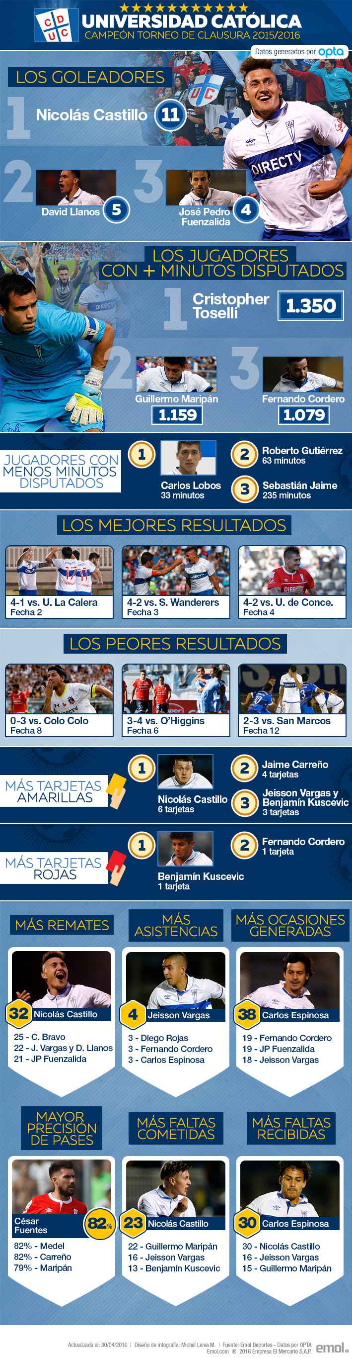 Castillo el goleador y al que más amonestaron: El podio de la UC campeona del Clausura
