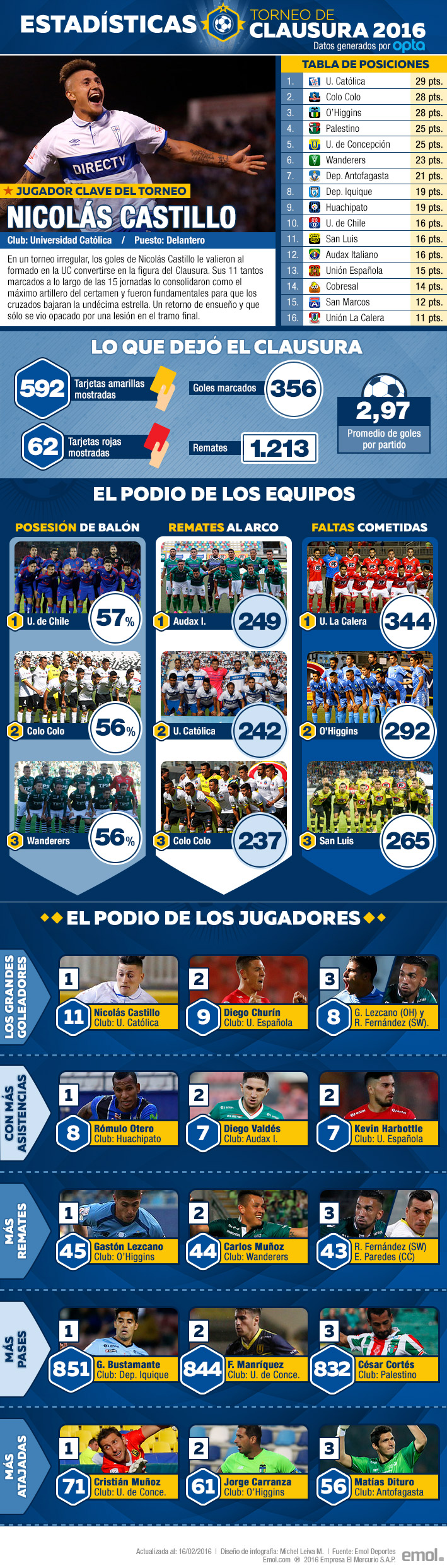 Castillo el goleador, la U el equipo con mayor posesión: Los mejores datos y estadísticas del Clausura