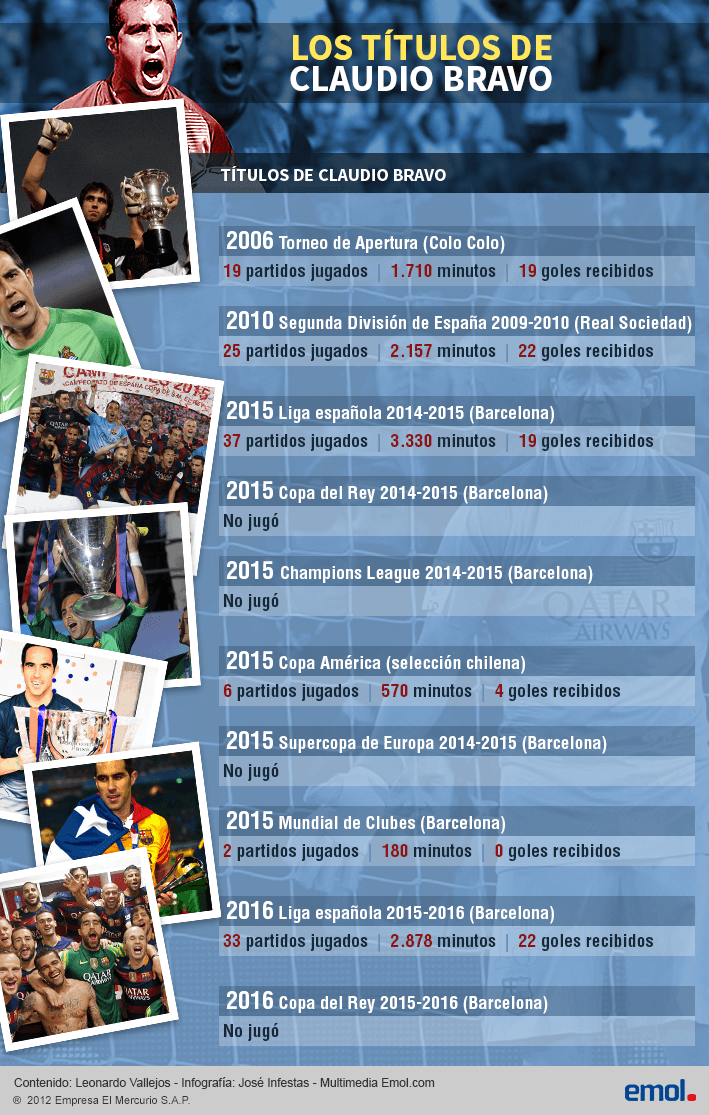 Infografía: Todos los trofeos que ha obtenido el portero Claudio Bravo en su trayectoria