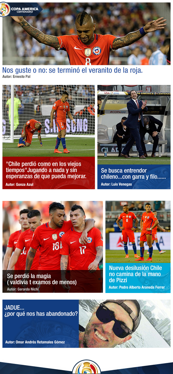 Revisa la selección de las mejores publicaciones de los lectores de Emol sobre la caída de la escuadra nacional ante Argentina en el debut de la Copa Centenario.