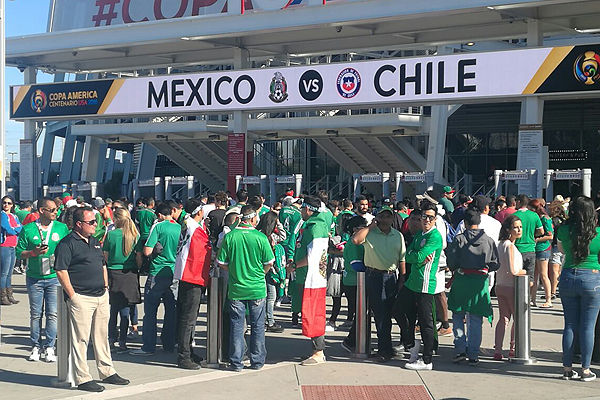 Dos horas antes del comienzo del partido entre Chile y México, las calles aledañas al Levi's parecían una verdadera invasión mexicana, pues era impresionante ver la cantidad de hinchas del "Tri" que se acercaban al recinto deportivo. Obviamente, todos con la camiseta verde de su selección y muy confiados por una victoria.