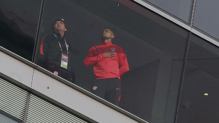 Quedó fuera por amonestaciones y lo sintió. Arturo Vidal vivió su partido aparte en el Soldier Field de Chicago, donde desde una caseta del estadio se dedicó a ver el partido y apoyar a sus compañeros. Y fue desde antes del inicio del cotejo, mientras se entonaba el himno chileno, que el volante comenzó a palpitar con intensidad el cotejo, cantando con su mano en el corazón y golpeando el ventanal al ritmo de la canción nacional. Un show aparte.