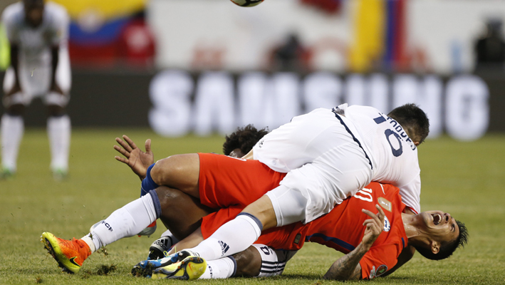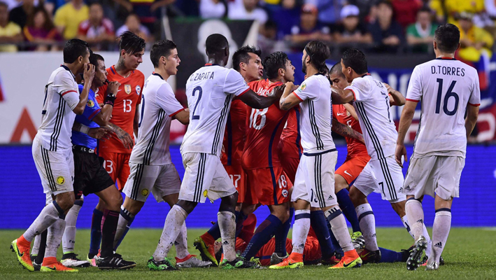 Con el correr del segundo tiempo, casi tres horas después de los tantos de Aránguiz y Fuenzalida y ante lo cerrado de la defensa chilena, el combinado colombiano se comenzó a desesperar y empezó a perder los estribos, con duras entradas que llegaron en un momento a caldear los ánimos en la barrosa cancha del Soldier Field de Chicago.