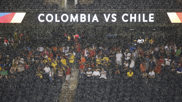 Fueron al menos tres los hinchas que invadieron el campo durante el partido. El primero lo hizo justo cuando se anunciaba la tormenta eléctrica y se evacuaron las zonas de riesgo al borde de la cancha, aprovechando la poca seguridad. Luego, en el segundo tiempo, dos hinchas colombianos volvieron a invadir y paralizar el partido. Un show aparte para los más de 55 mil hinchas que llegaron a Chicago para ver el duelo de semifinales, quienes rieron con las caídas de los guardias de seguridad y las fintas de los aficionados que saltaron al campo de juego para estar más cerca de sus ídolos.