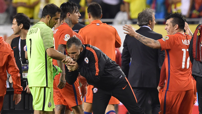 El pitazo del juez salvadoreño Joel Aguilar desató la celebración de los jugadores de la selección chilena. Juan Antonio Pizzi saludó a sus jugadores y se retiró con una sonrisa de oreja a oreja a camarines, mientras sus pupilos seguían los abrazos y festejos en la cancha. Chile alcanzó una nueva final luego de un partido que duró 90 minutos, pero se extendió por más de 3 horas y media.
