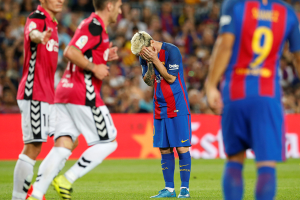 De nuevo por detrás en el marcador, Luis Suárez entró por Paco Alcácer (65'), pero ni siquiera la "MSN" reunida, ya que el brasileño Neymar jugó de titular en su primer partido tras volver de Río 2016, consiguió encontrar el camino del gol ante un recién ascendido, que registró este sábado su primera victoria en Primera División en una década.