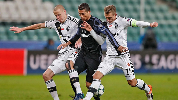 El galés Gareth Bale (al minuto 1) y el francés Karim Benzema (35') adelantaron a los hombres de Zinedine Zidane, pero el Legia aguó la fiesta española reequilibrando después con las dianas del belga de origen ghanés Vadis Odjidja (40') y del serbio Miroslav Radovic (58').
