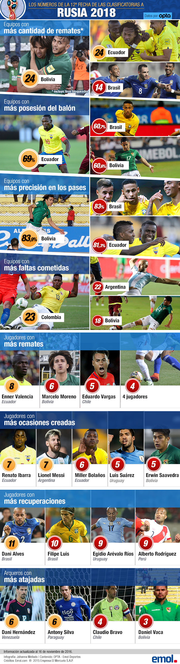Varios jugadores de las distintas selecciones tuvieron números sobresalientes en los duelos que disputaron.