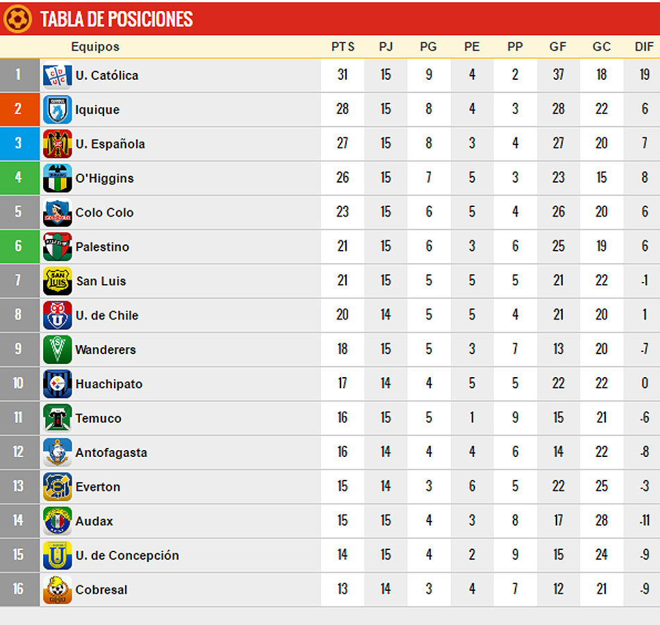 Chile 4: Ganador de duelo entre los segundos (Colo Colo, por ahora, o Unión)
