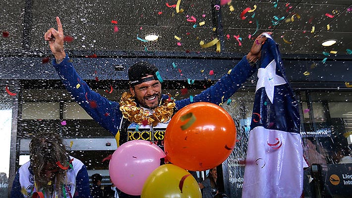 La alegría del piloto chileno Pablo Quintanilla era total al momento de llegar a Santiago, después de ganar el título mundial de Rally Cross Country.