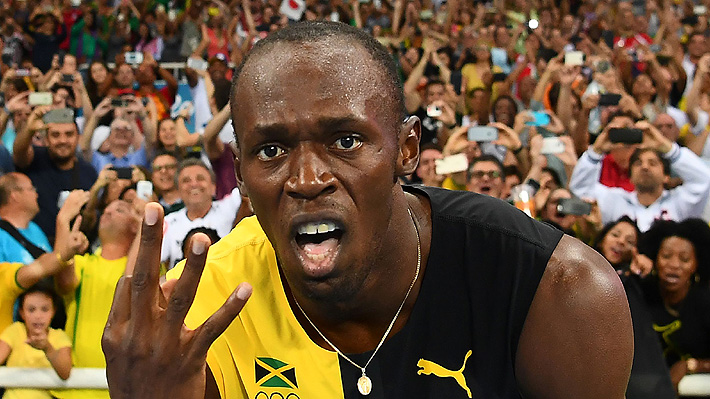 La máxima figura de los Juegos Olímpicos de Río de Janeiro 2016, el jamaiquino Usain Bolt, se da el tiempo de sonreír ante sus rivales mientras gana otra medalla de oro. Impresionante.