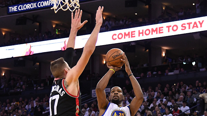 NUEVA YORK.- En duelo entre equipos líderes de división, el alero Kevin Durant sumó 22 puntos e igualó su mejor marca de la temporada con 17 rebotes y llevó a los Warriors de Golden State a una victoria por 121-111 sobre los Raptors de Toronto, que vieron rota su racha de siete derrotas seguidas.