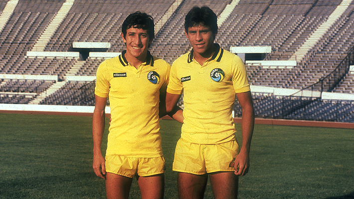 Cabañas (der.) junto a su compatriota Julio César Romero, con la camiseta del Cosmos de Nueva York.