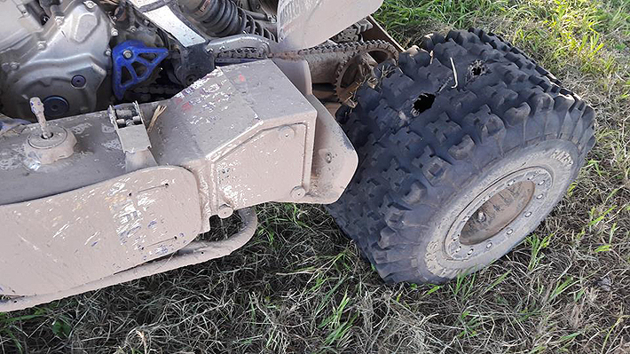 Así quedó el maltrecho neumático del quad de Ignacio Casale.