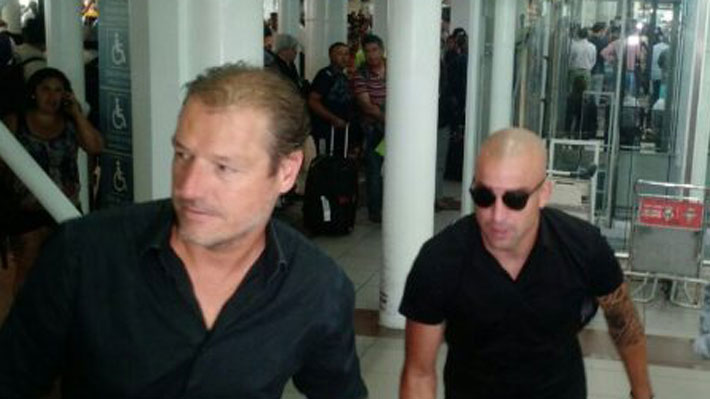 El charrúa, de 36 años, fue recibido en el aeropuerto Arturo Merino Benítez por el gerente deportivo del club, José María Buljubasich.