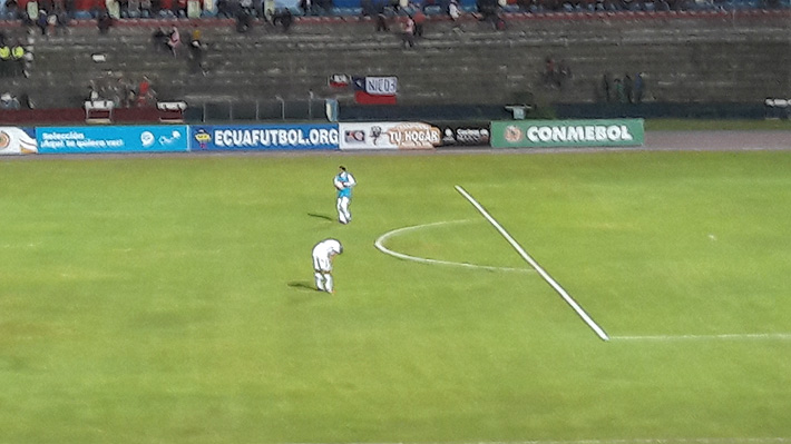 Apenas sonó el pito del árbitro uruguayo Jonathan Fuentes, el lateral Cristián Gutiérrez no pudo más y se desplomó sobre la irregular cancha ecuatoriana.