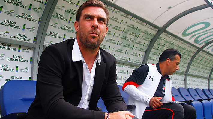 El técnico de Colo Colo junto a Agustín Salvatierra durante el partido frente a Deportes Temuco.
