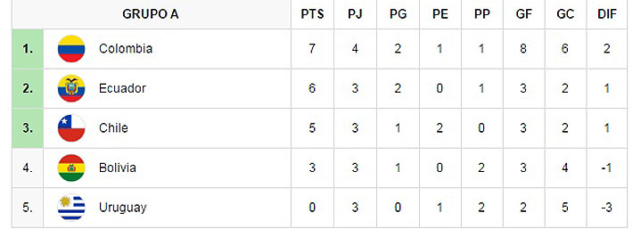 Esto porque después de su último empate 1-1 con Uruguay, la escuadra chilena sumó 5 puntos, quedando en el tercer puesto del Grupo A, el cual es liderado por Colombia con 7 puntos y seguido por Ecuador con 6. Precisamente este último será el próximo rival de los nacionales.