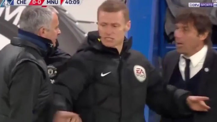 La polémica, eso sí, partió con el actual entrenador del Chelsea, el italiano Antonio Conte, con el quien protagonizó un duro encontrón cuando se disputan los 40 minutos del compromiso y en el que incluso intervino el árbitro del compromiso. Todo por la expulsión por doble amarilla del volante de los "Diablos Rojos", Ander Herrera.