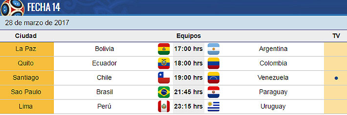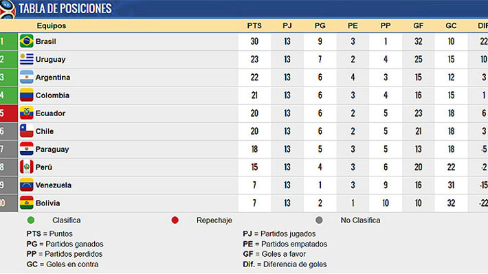 La "Roja" llega a este lance en la sexta posición, fuera de todo. No está en zona de repechaje ni mucho menos clasificando directo al Mundial de Rusia 2018.