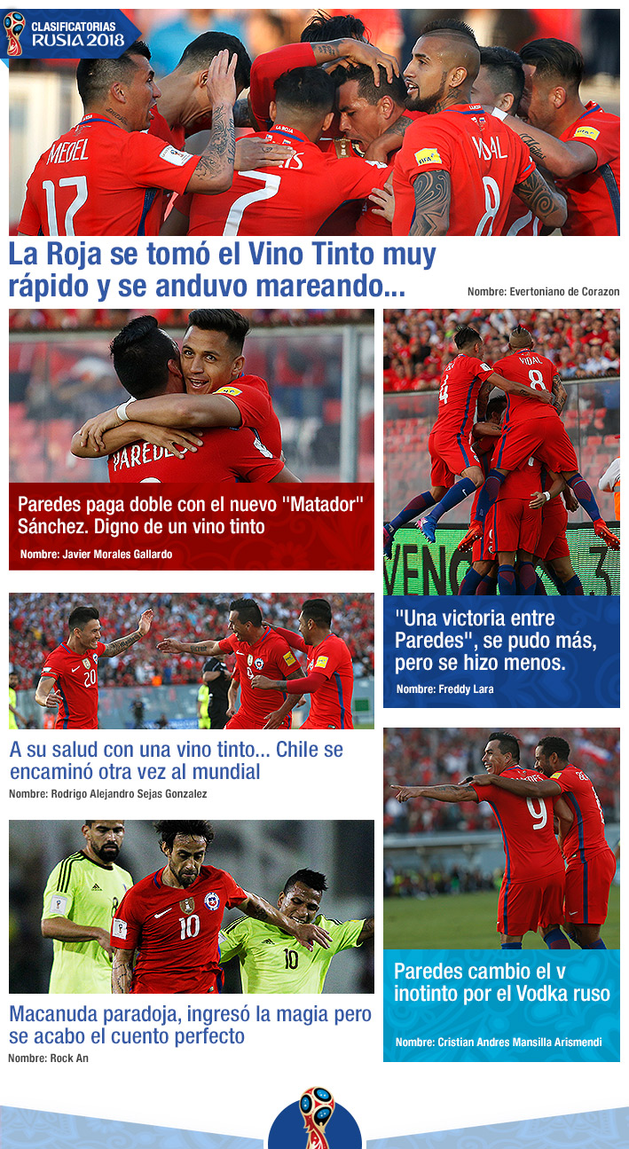 Revisa la selección de las mejores publicaciones realizadas por los lectores de Emol para analizar la victoria de 3-1 lograda en el Monumental, por las Clasificatorias.
