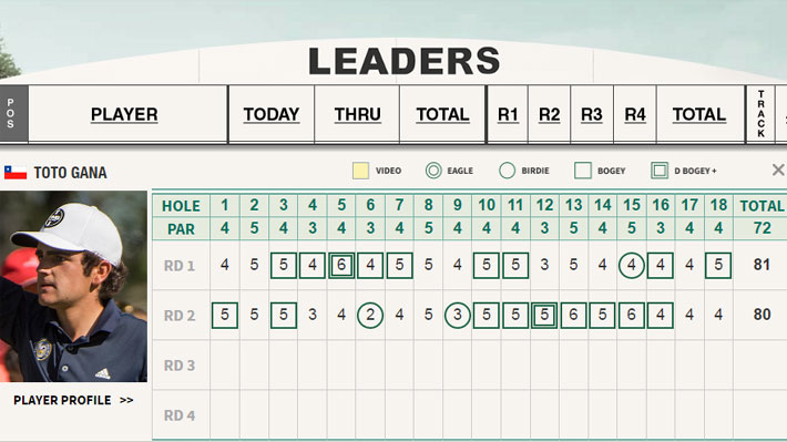 El golfista chileno volvió a tener un muy mal día en el green y finalizó con 161 golpes entre las dos jornadas (81 ayer y 80 este viernes), lo que le dio una tarjeta de 17 sobre el par.