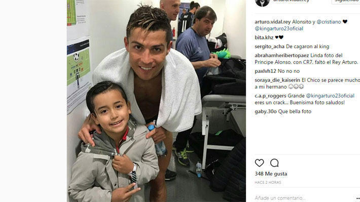 El astro portugués no tuvo problemas en sacarse una foto con el hijo de Vidal, misma situación que el galés Gareth Bale.