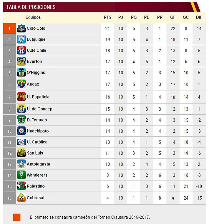 SANTIAGO.- Terminó la décima fecha del Torneo de Clausura y la lucha por el título sigue encendida, además con un nuevo líder en la competencia.