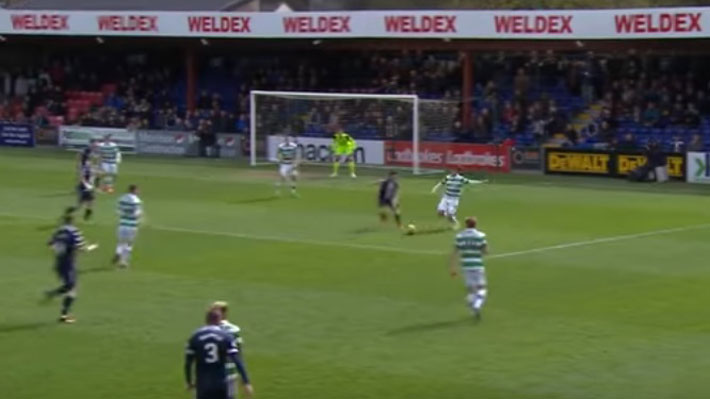 El Celtic ganaba por 2-1 al Ross County en condición de visitante cuando sobre el final vino un desborde por derecha que terminó con el jugador neerlandés Alex Schalk despachándose un descarado piscinazo.